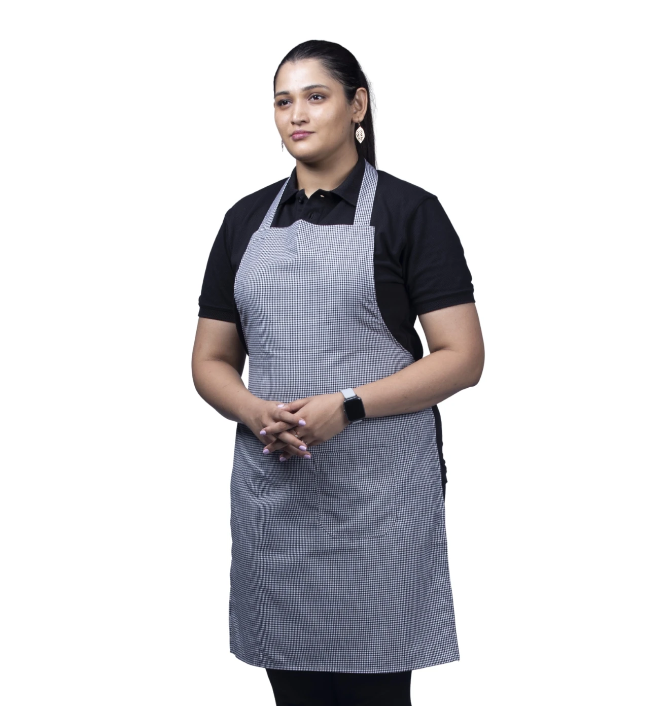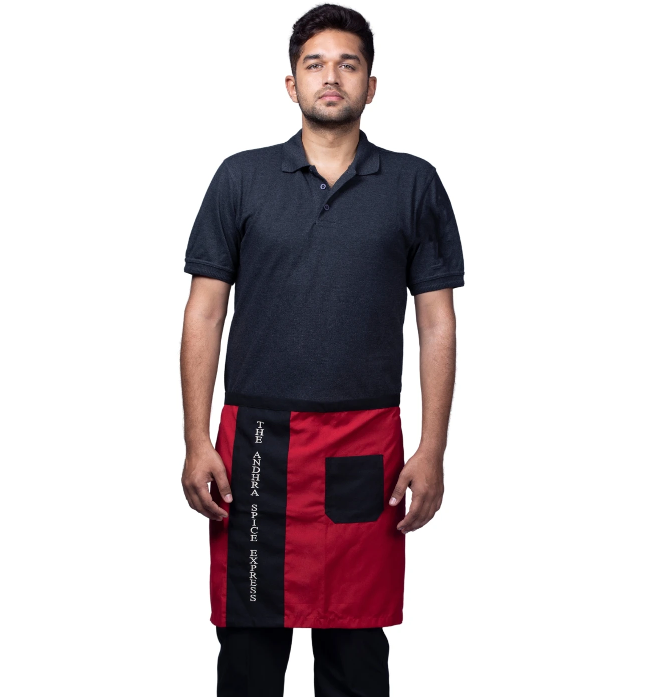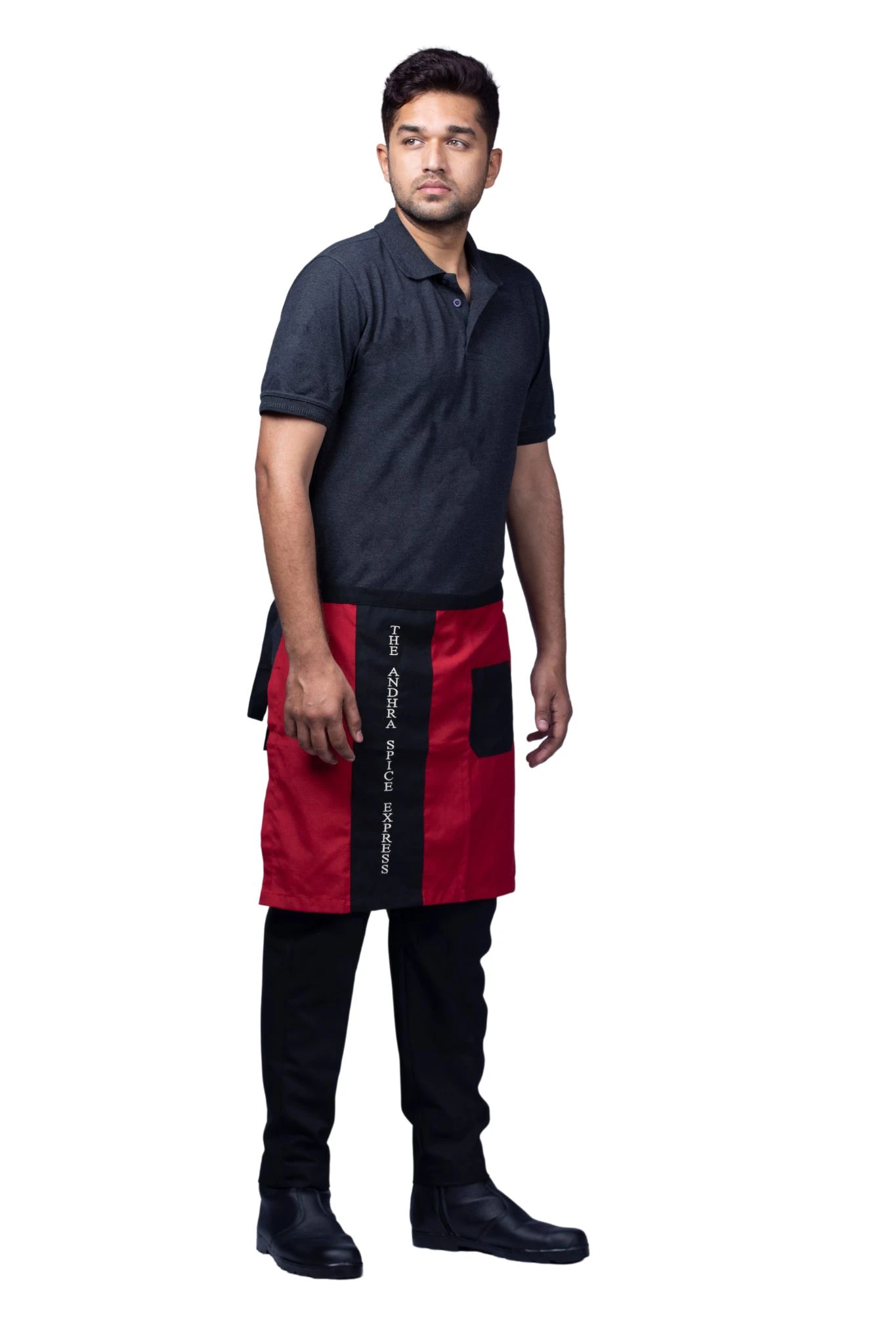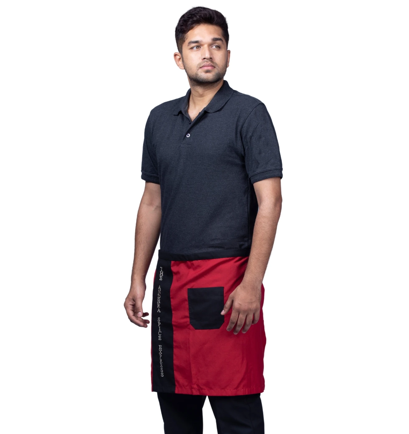 A stylish and durable hotel half apron, designed for comfort and functionality, perfect for front-line service staff.