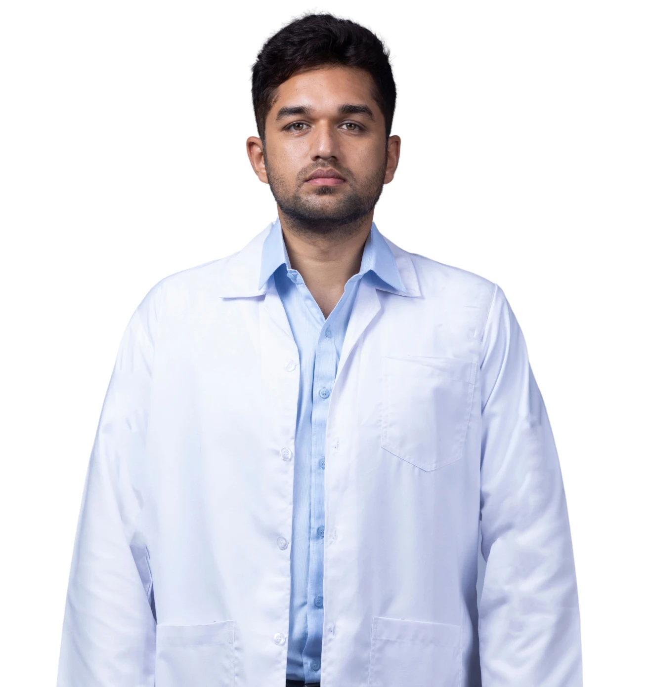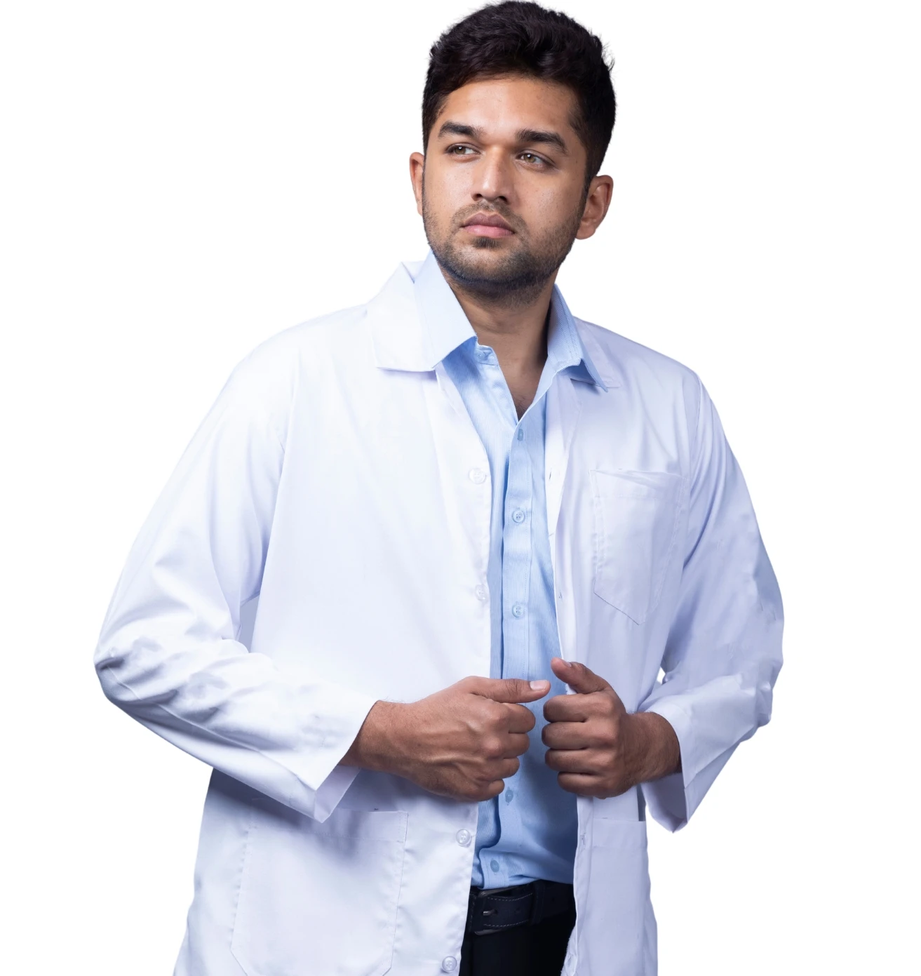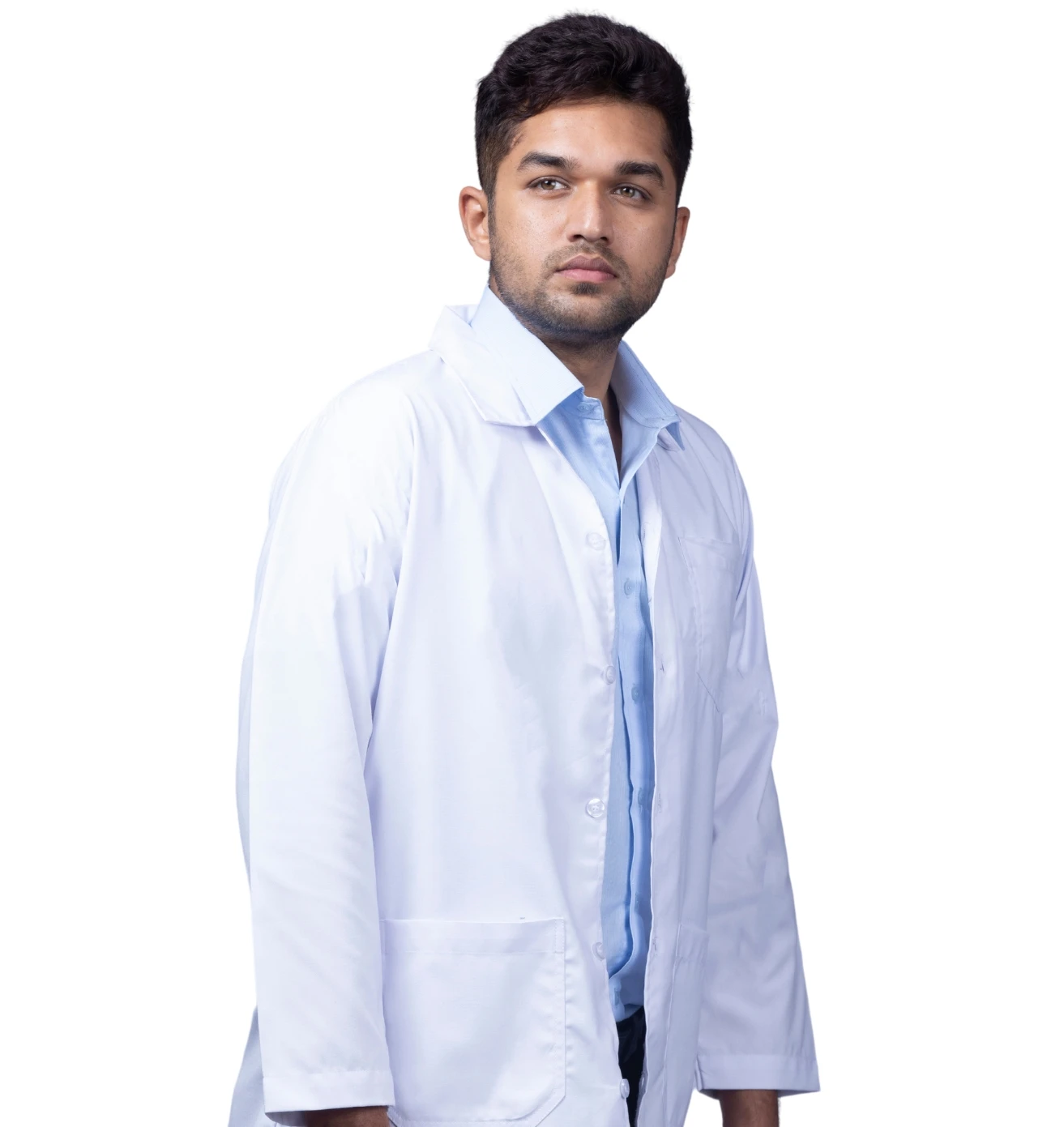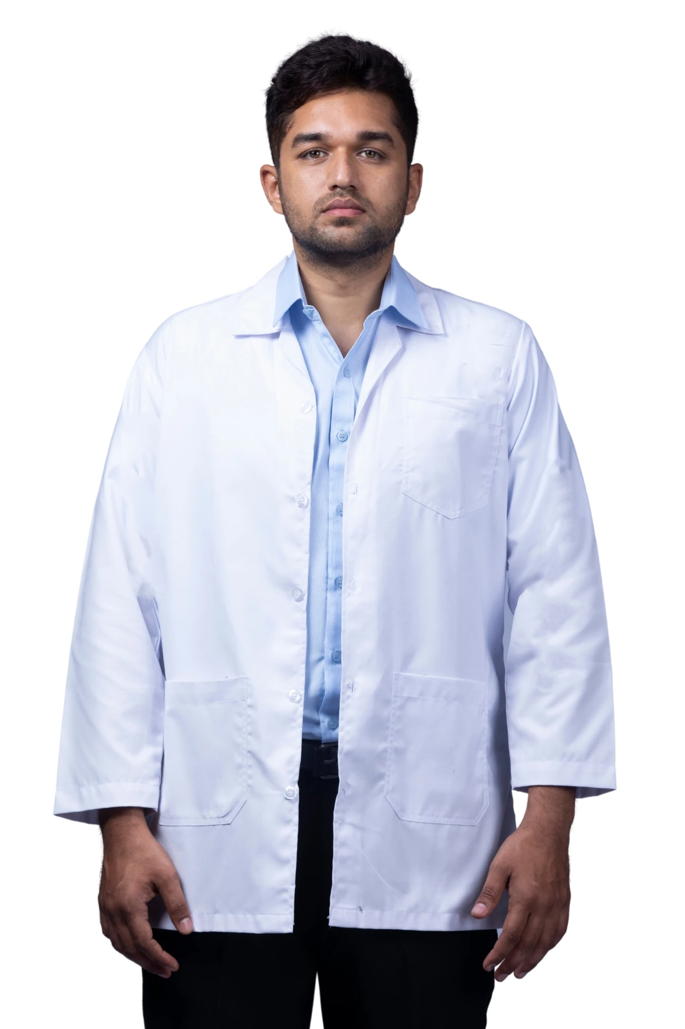 A pristine white doctor coat, crafted for comfort, professionalism, and durability in medical and healthcare settings.