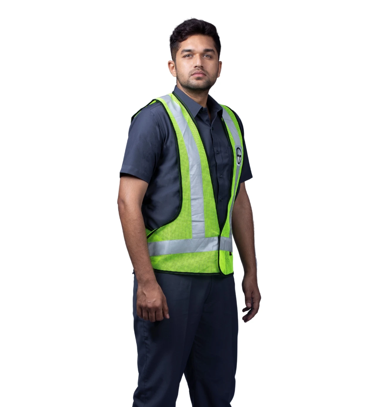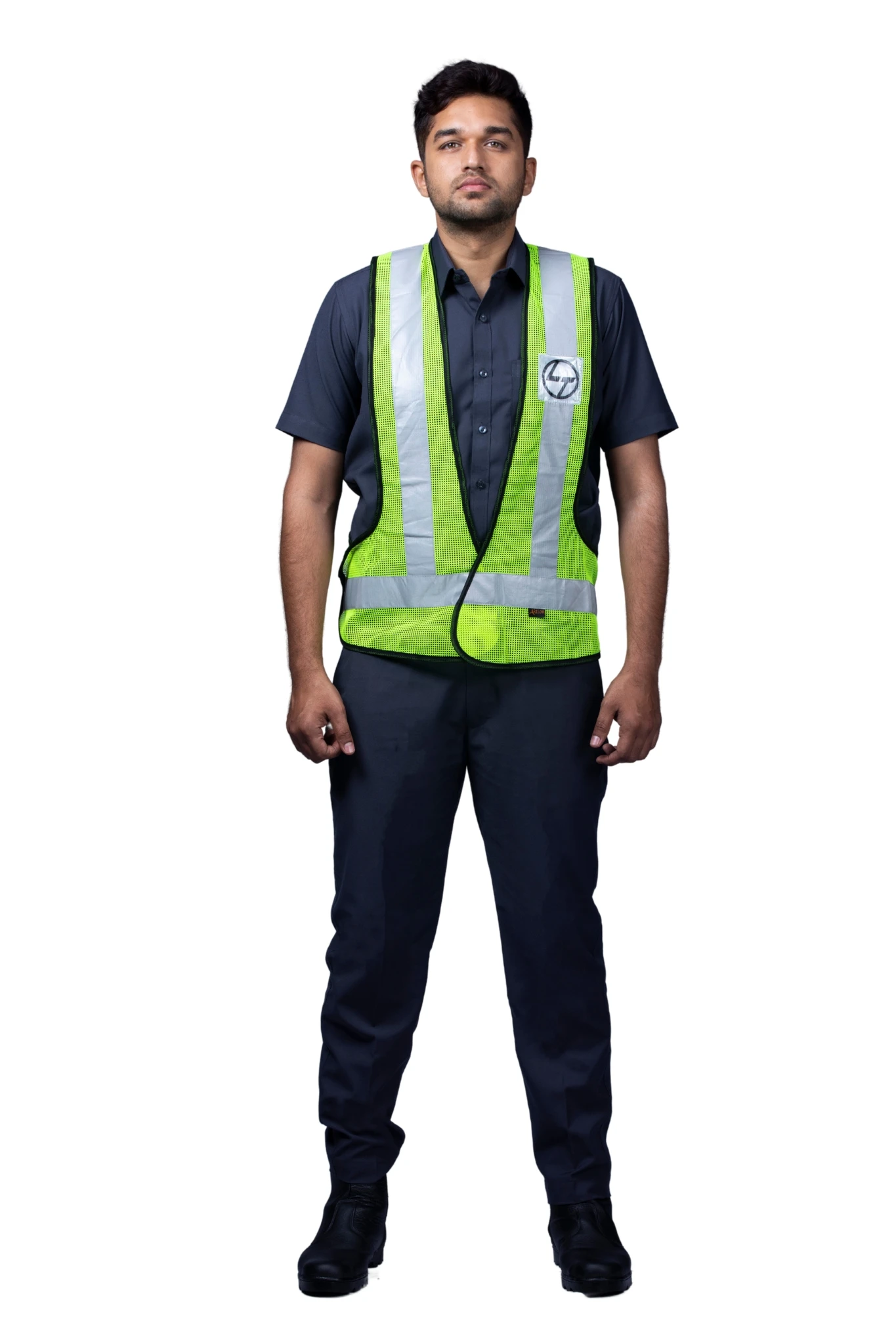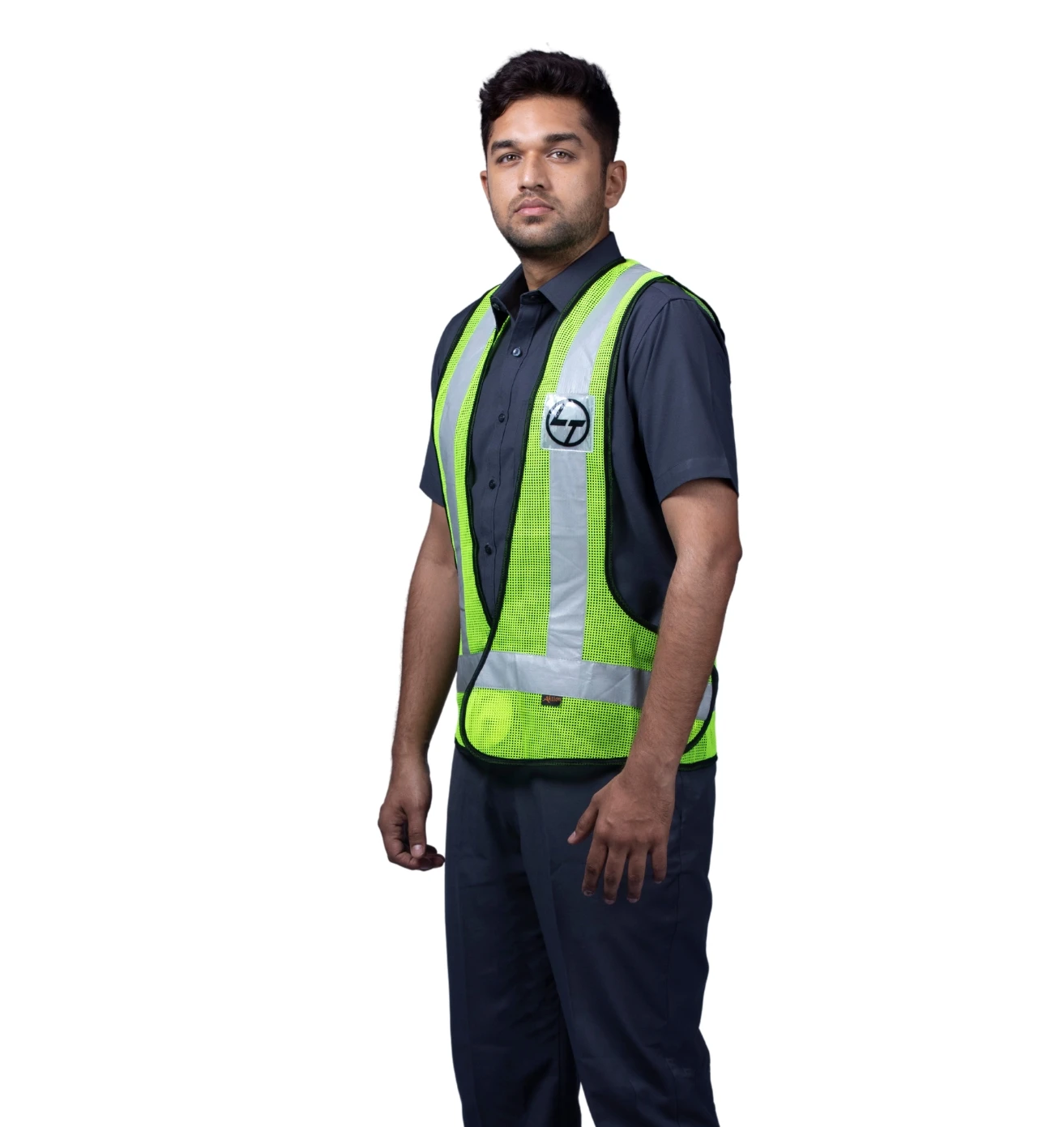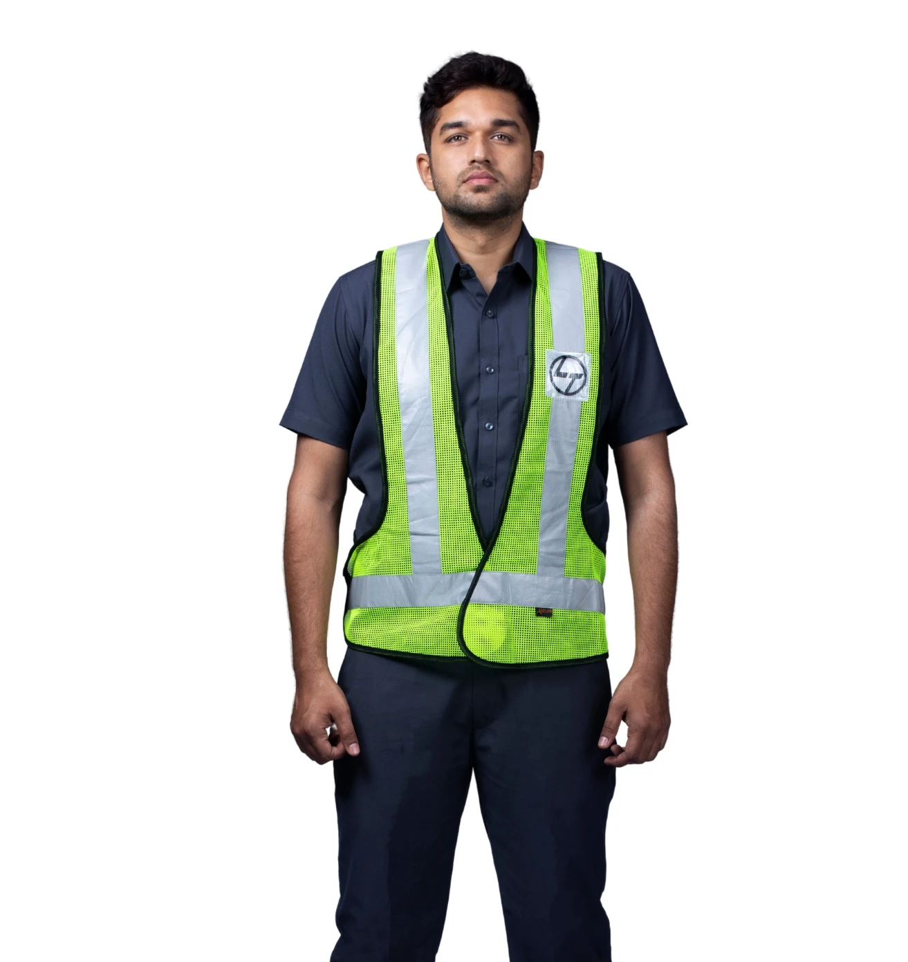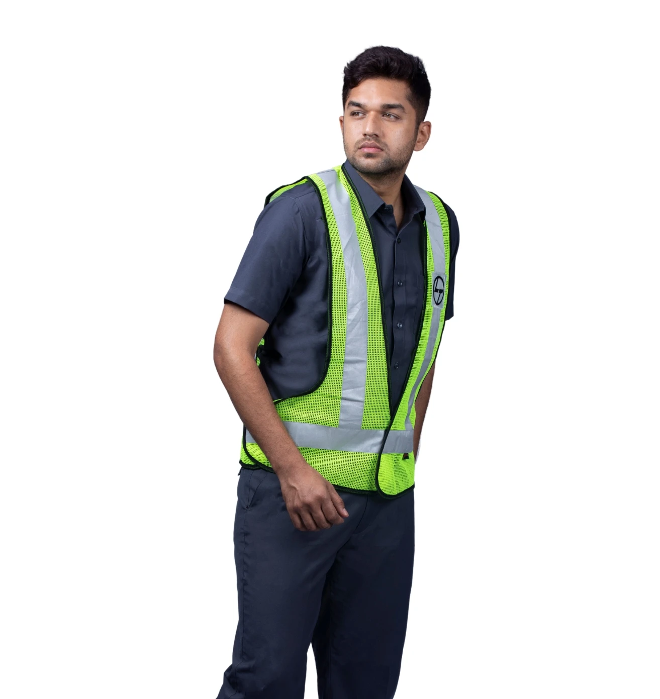 Stand out and stay safe with this neon green reflective half-sleeve jacket, blending visibility, comfort, and modern workwear style.