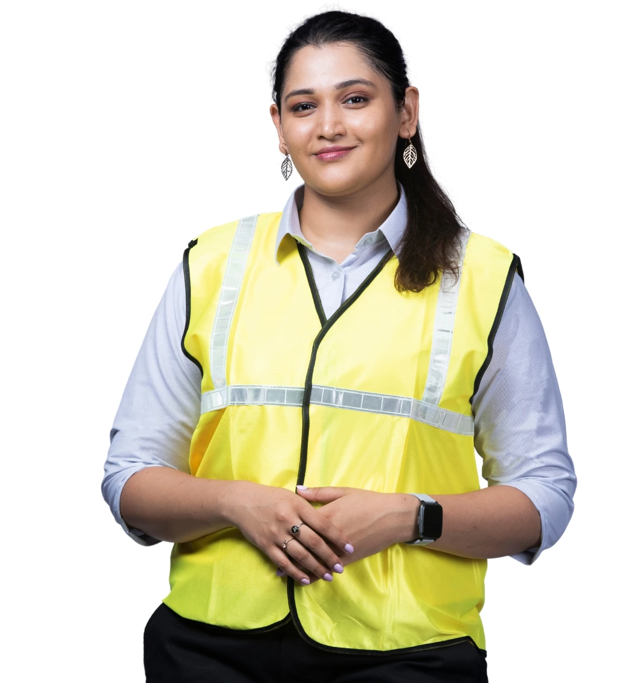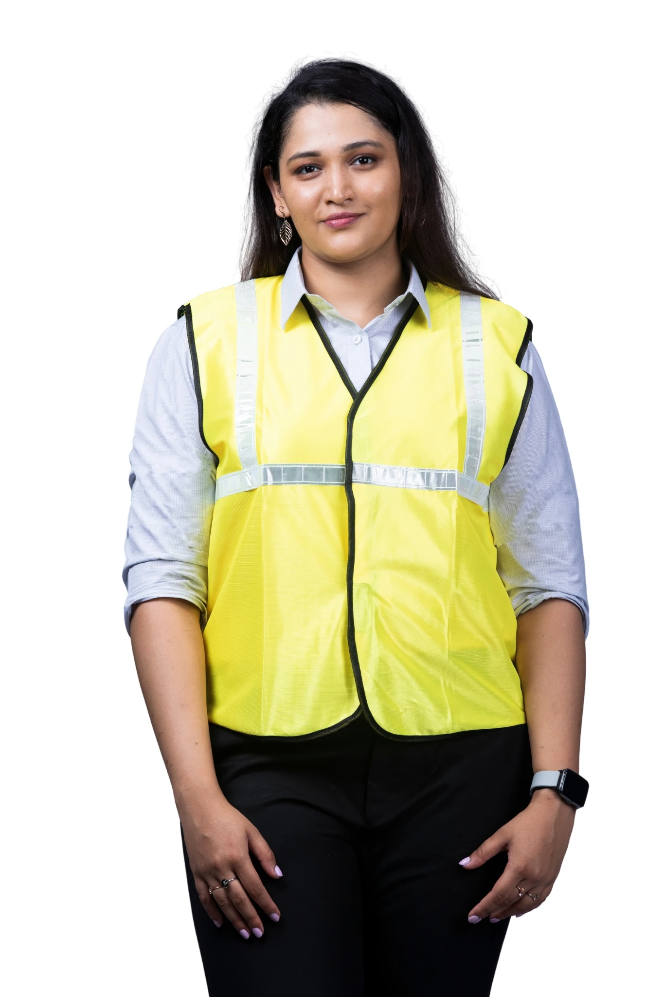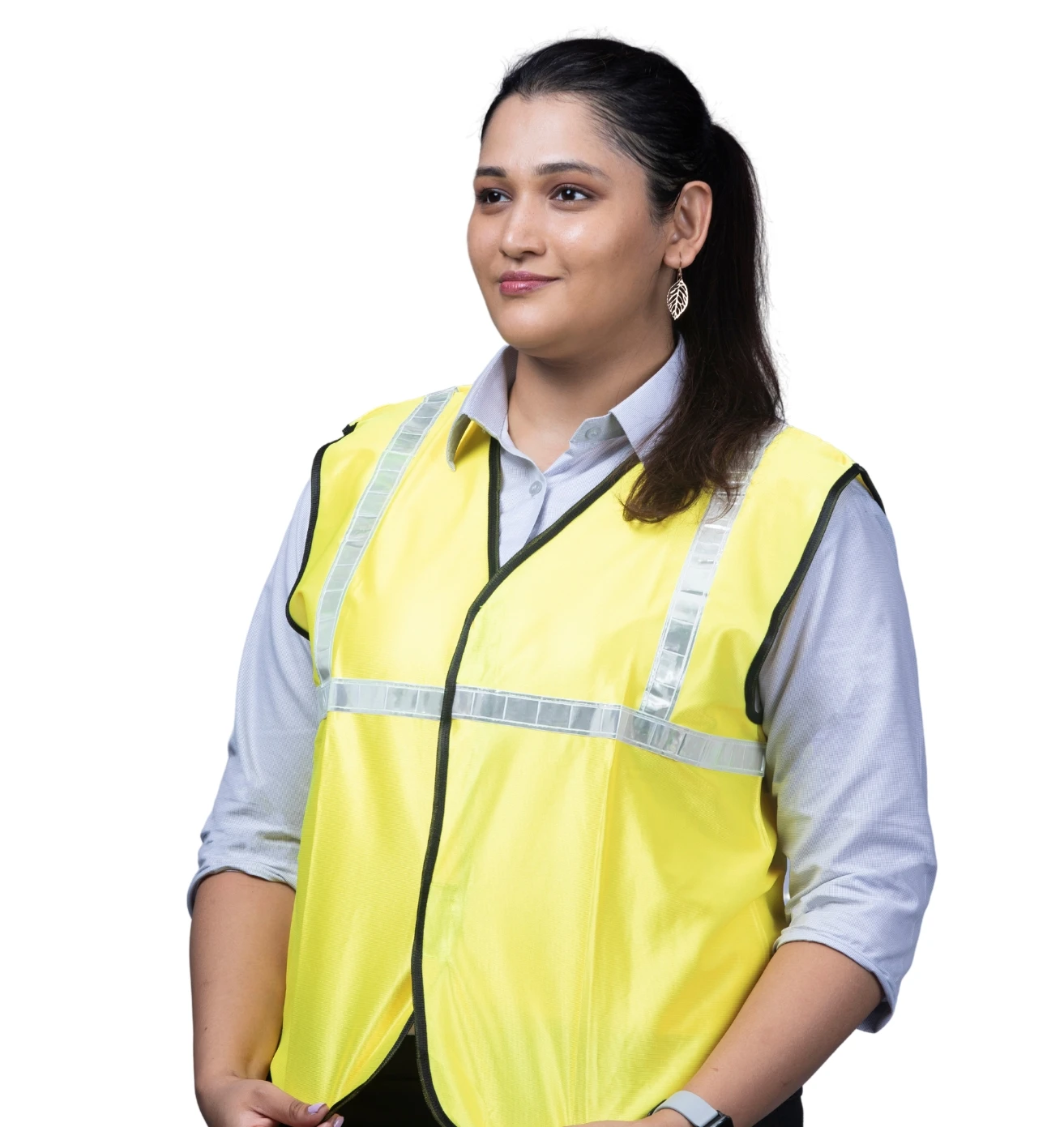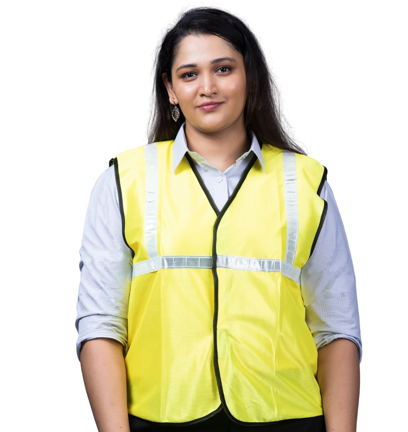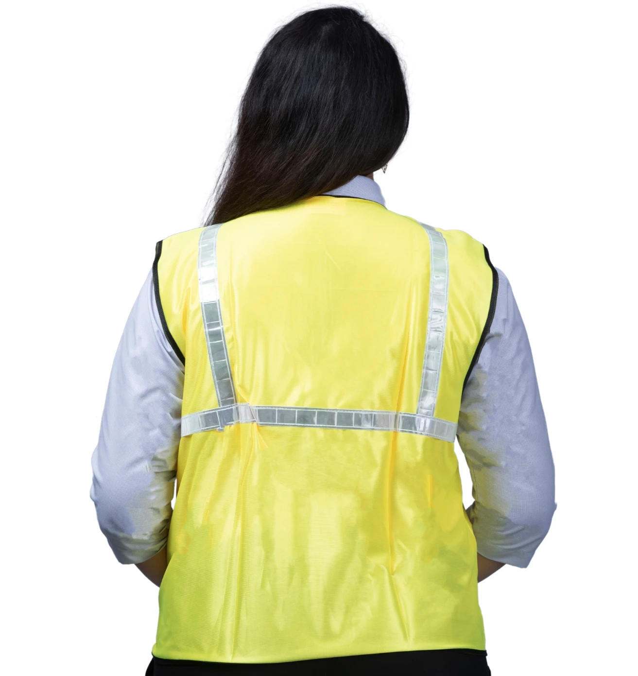 Stand out and stay safe with this neon green reflective half-sleeve jacket, blending visibility, comfort, and modern workwear style.